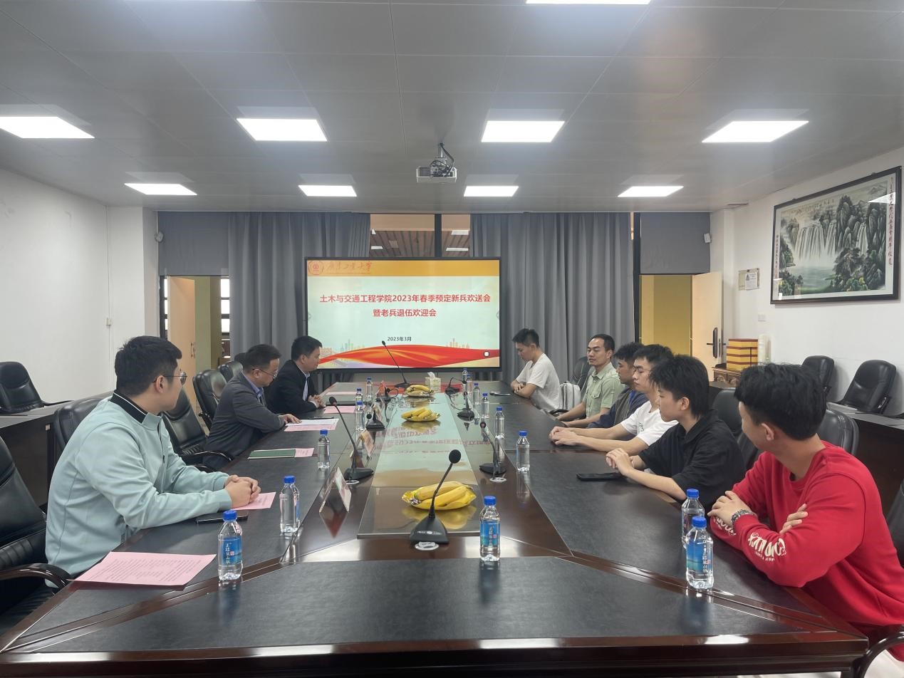 又是一年送兵时,无悔青春献军营,3月2日,冰球官网在实验二号楼502举行2023年春季预定新兵欢送会暨老兵退伍欢迎会,为即将步入军营的叶凯杰、范凯迪、吴雨轩、曾悦四位同学送行,同时欢迎两位退伍返校老兵黄树涵和赛米·苏来曼。学院党委书记周建强、副书记陈颂坚、辅导员邝炜坚参加了本次欢送会。会议由土木学院征兵联络员刘甜甜老师主持。
