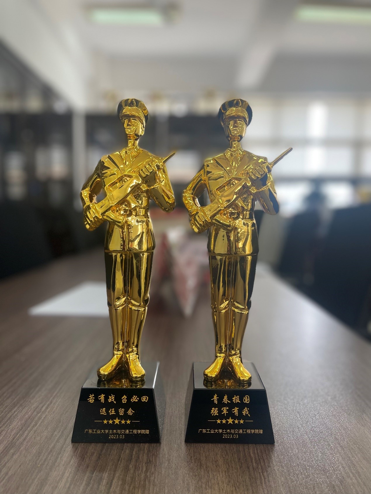 周书记代表学院对四位同学实现参军梦想表示祝贺,对他们携笔从戎的报国志向给予了充分赞扬和肯定,他对四位同学提出了三点希望,一是希望四位战士在军队的大熔炉里牢记使命,不忘初心,二是希望他们发扬不怕苦不怕累的精神,三是希望他们服从命令,听从指挥,刻苦训练,为家人争光,为学校争光,为部队争光。欢送会上,周建强书记代表学院向四位同学赠送了“参军报国,强军有我”的纪念品,陈颂坚副书记向退伍老兵赠送了“若有战,召必回”的纪念品,并送上真挚祝福。